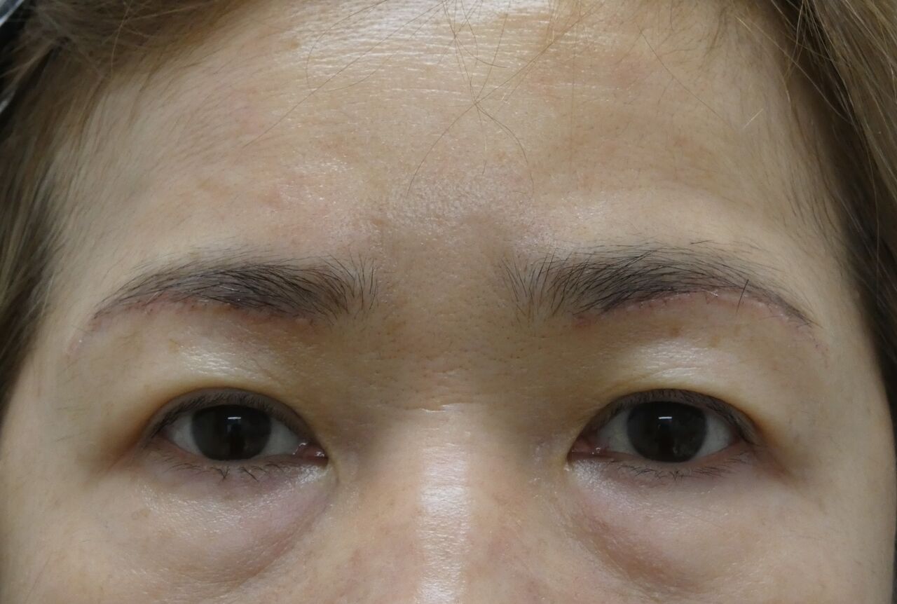 このため、睫毛部には余剰皮膚が残ります。これが一重の方の眉下切開後の経過です。